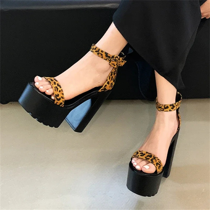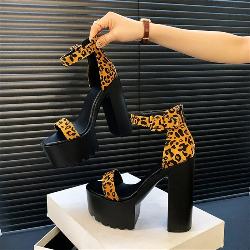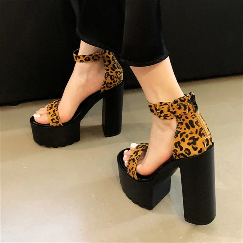 Fashion Design Style Leopard Print High Heels Women Sandals Zipper Platform Peep Toe Banquet Party Female Shoes