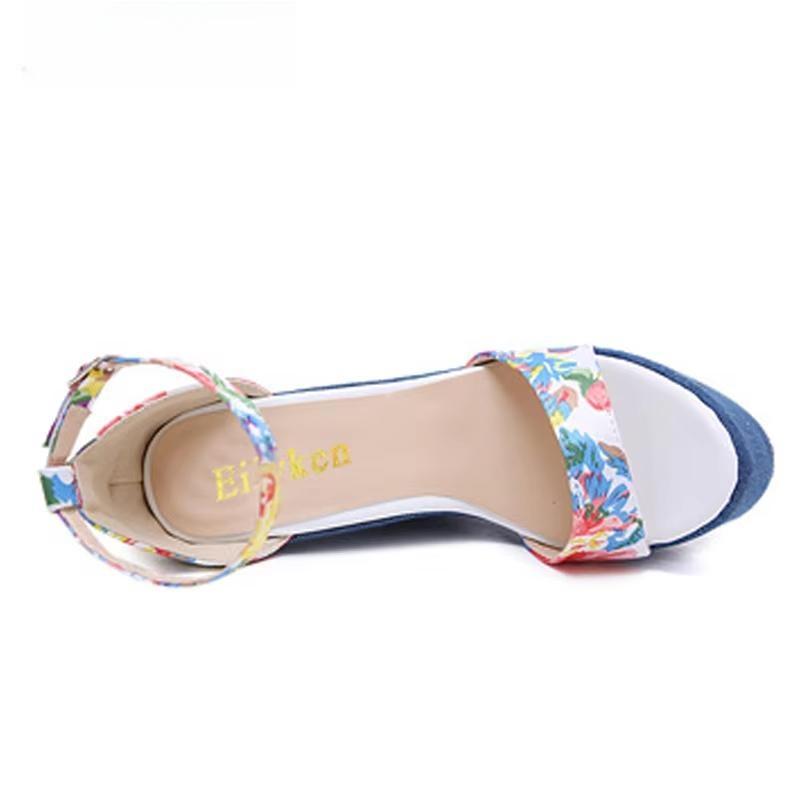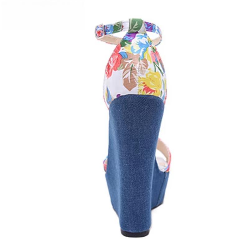 Fashion Designer Print Denim Sandals Woman Roman Wedges High Heels Peep Toe Platform Shoes Zapatos De Mujer