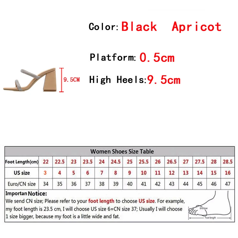 Fashion Glitter Silver Rhinestones Women Thick Heel Slippers Sexy Street Square Toe Dress Party Shoes Summer Sandal Pumps