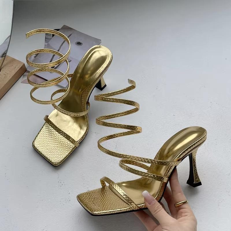 Fashion Gold Rome Sandals Peep Toe Thin Low Heel Narrow Band Summer Gladiator Casual Pumps Womens Shoes