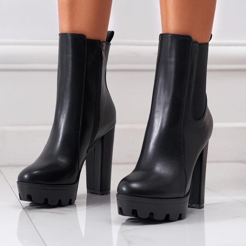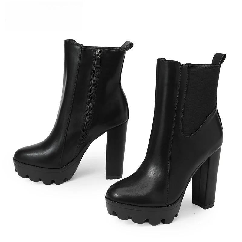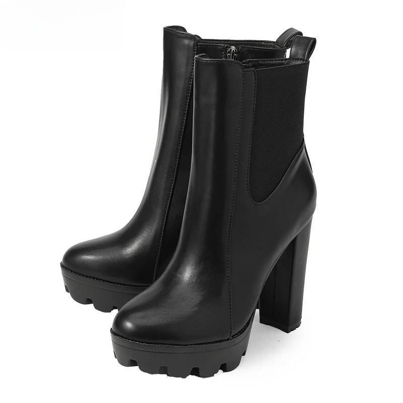 High Quality High Heels Ankle Boots Fashion Women Thick Platform Autumn Winter Slip On Ladies Street Style Shoes Mujer