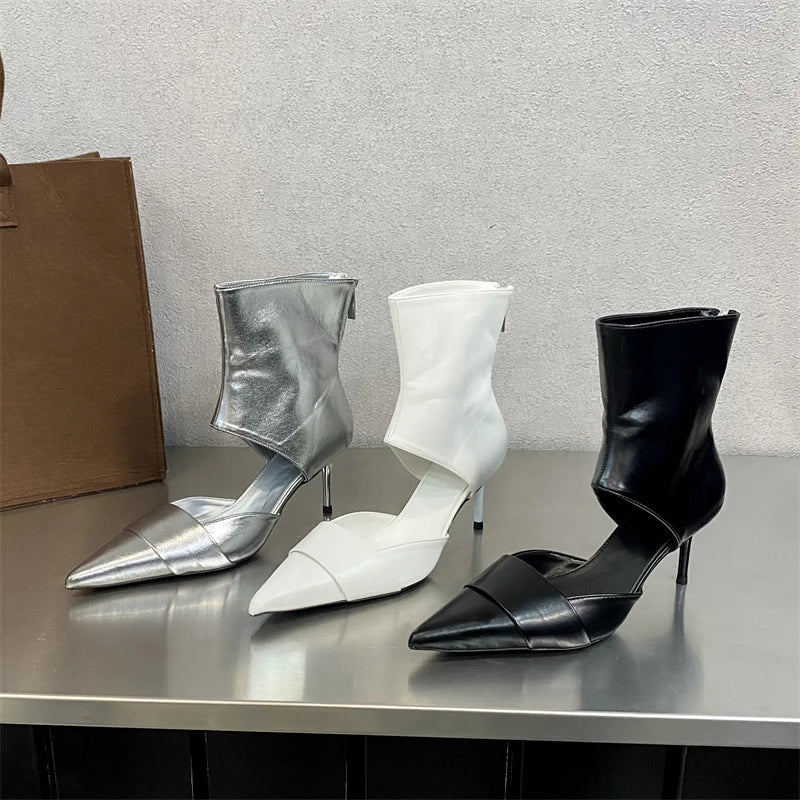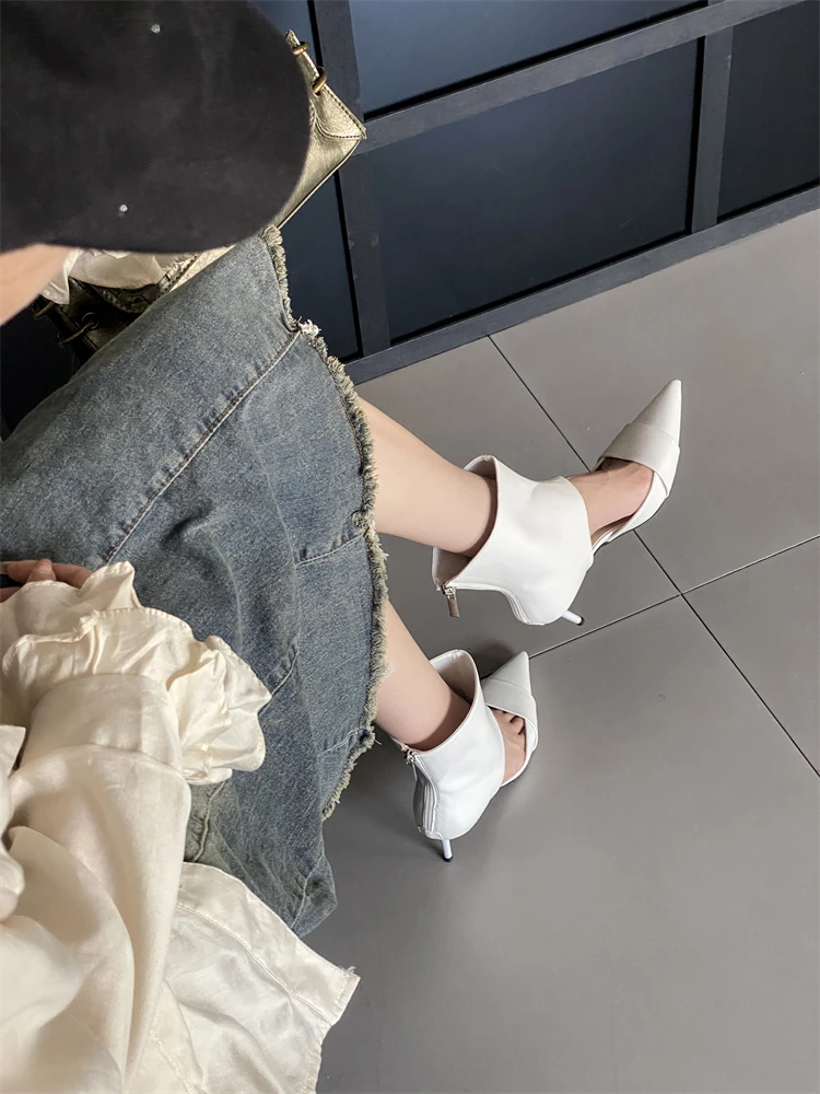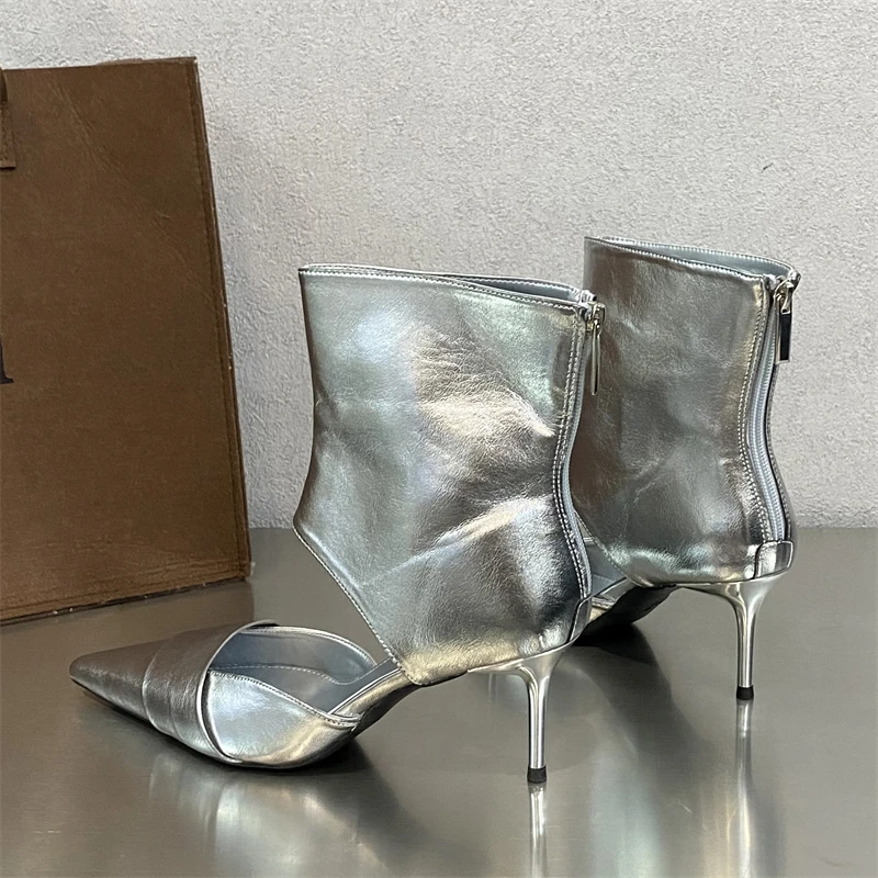 Fashion Hollow Out Zipper Pointed toe Women's Boots Low Thin Heels Booties Sandal Zapatos De Mujer
