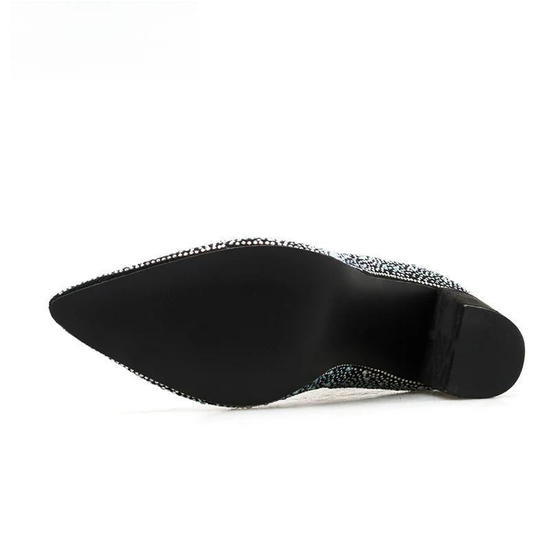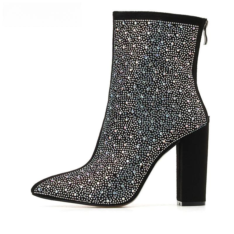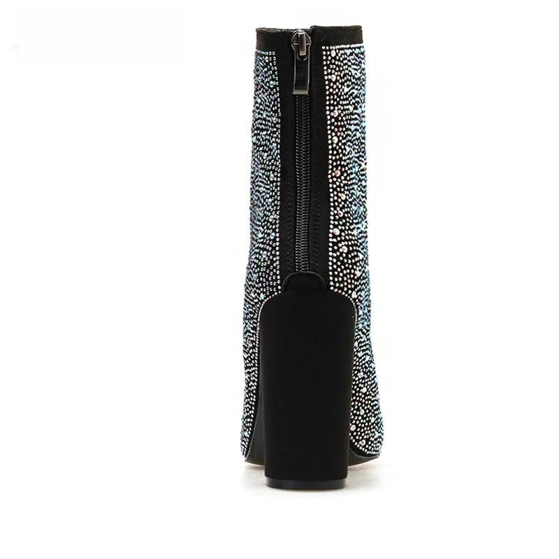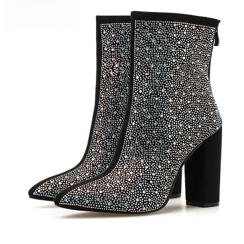 Fashion Sexy Banquet Women's Boots Thick With Shiny Rhinestones Nightclub Square Heel Zapatos Mujer