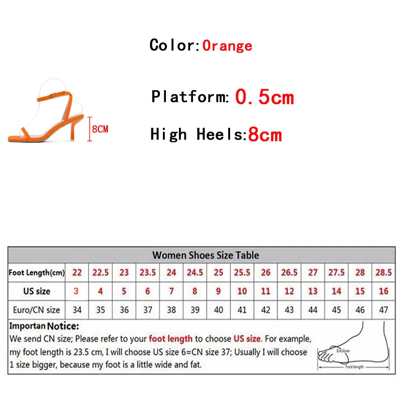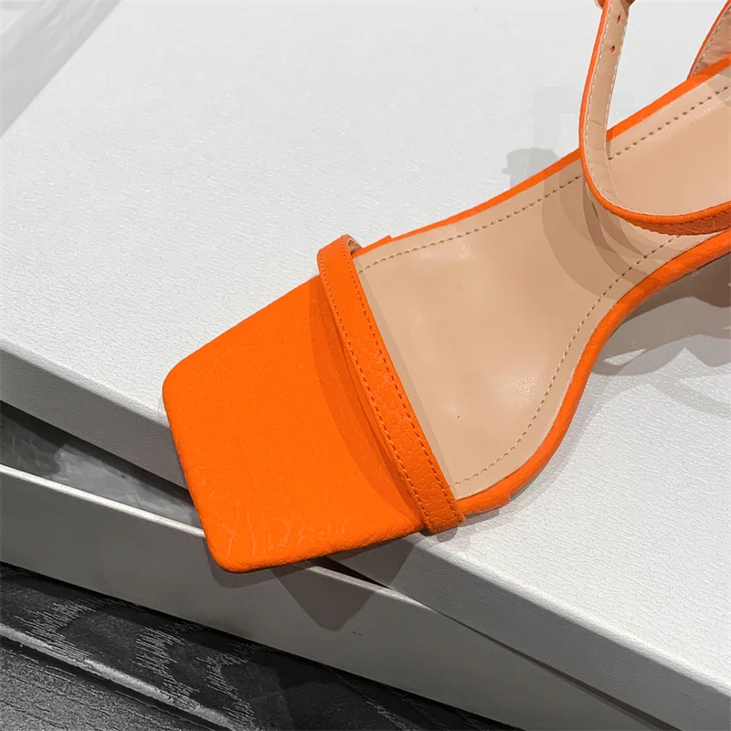 Fashion Square Toe Orange Sandals Thin Low Heel Buckle Strap Rome Summer Gladiator Women Casual Narrow Band Shoes Sandalia