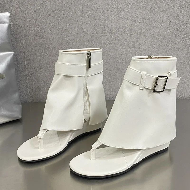 Fashion Style Clip Toe Wedges Heels Zipper Boots Sandals Women Belt Buckle Flip Flop Short Booties Shoes