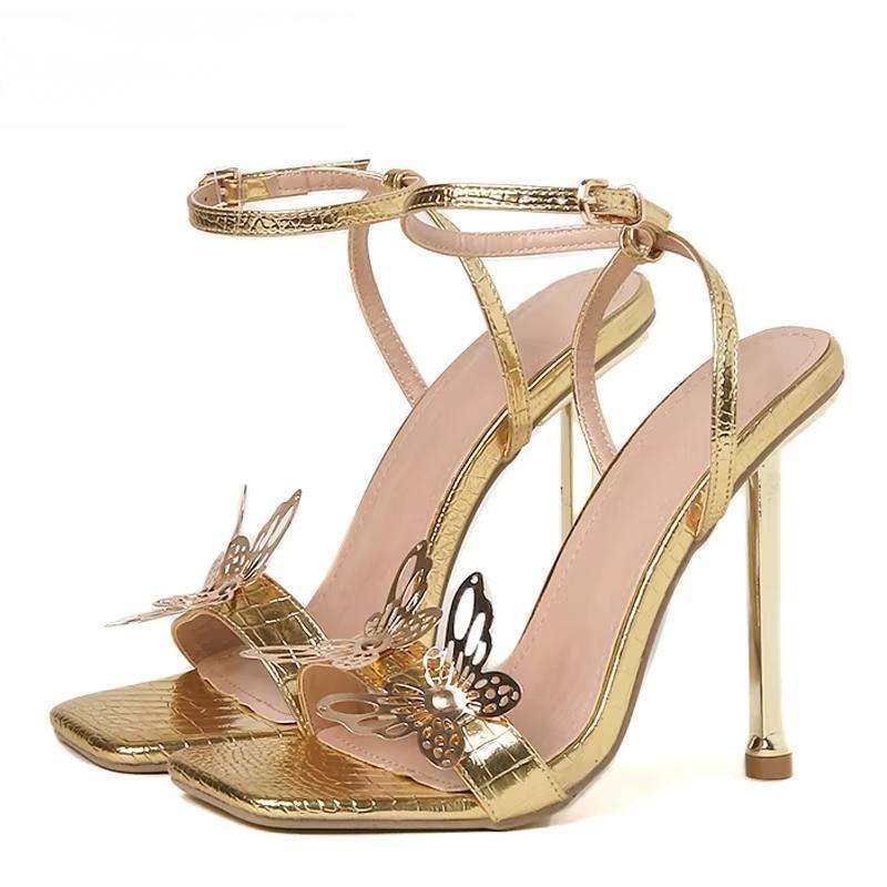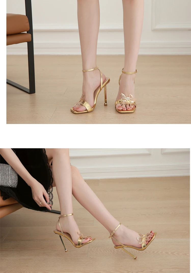 New Design Womens Sandals Fashion Summer Butterfly-knot High Heels Sexy Square Head Nightclub Stripper Shoes