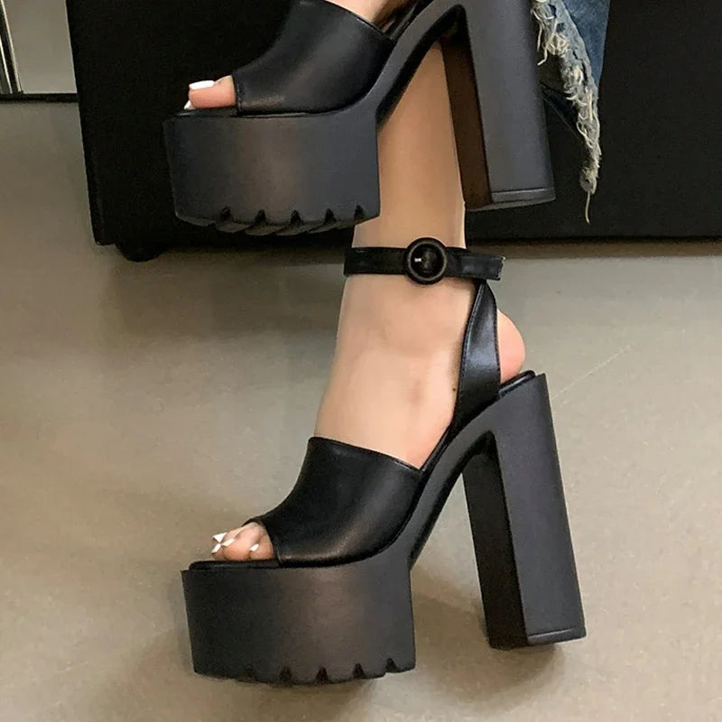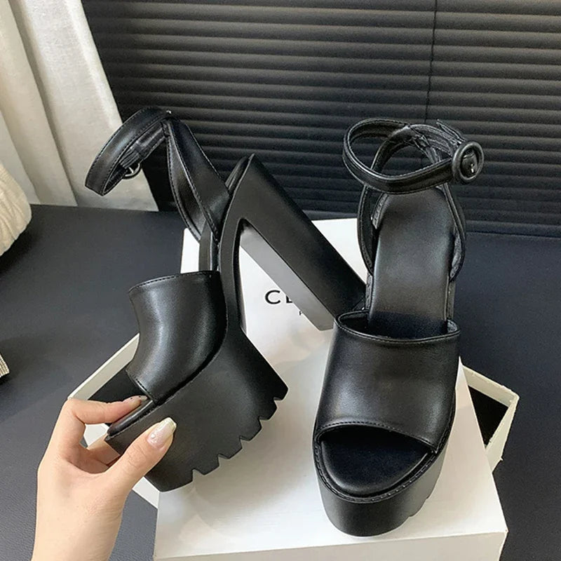 Fashion Super High Heels Women Sandals Summer Chunky Platform Buckle Strap Party Dress Shoes Big Size 34-43