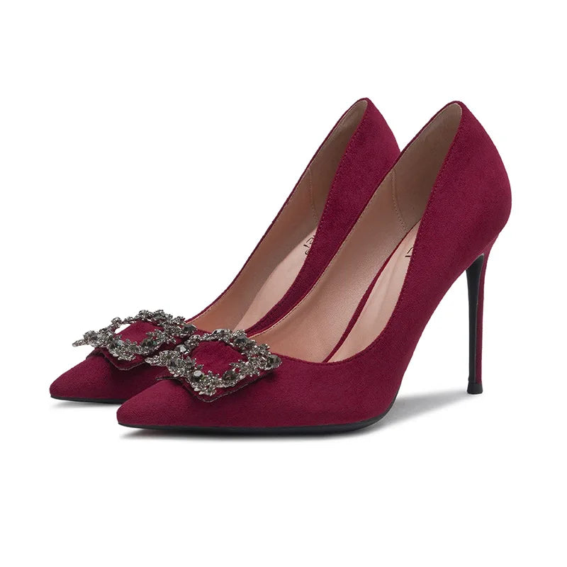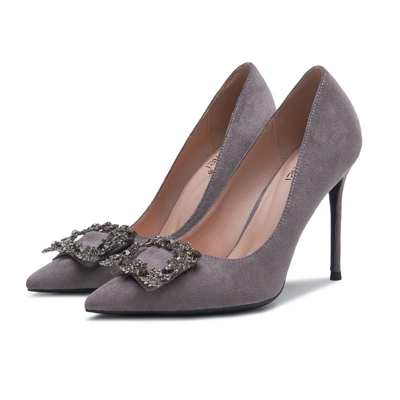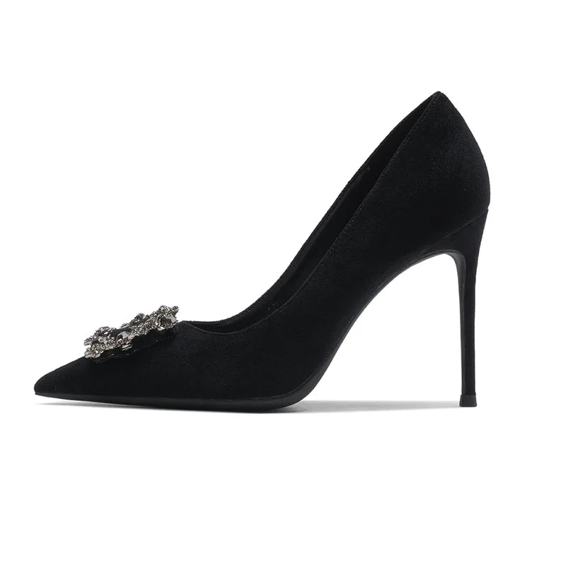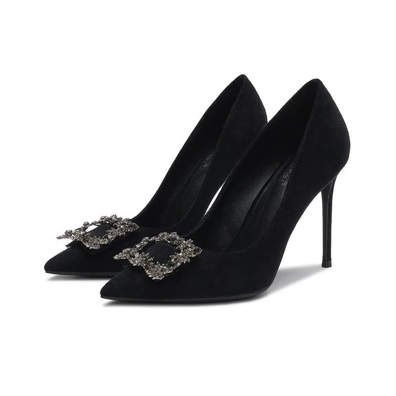 New Spring High Heels Women's Fashion Water Diamond Square Buckle Single Shoes Thin Heels Pointed Shallow Mouth Work Shoes