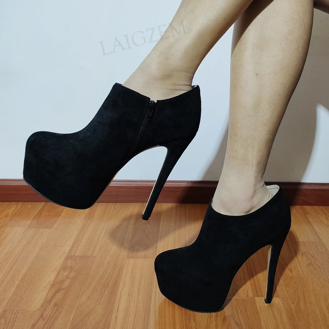 Women Ankle Platform Boots Faux Suede High Heels Boots Side Zip Handmade Ladies Botas Shoes Woman Large Size 38 44 47 52