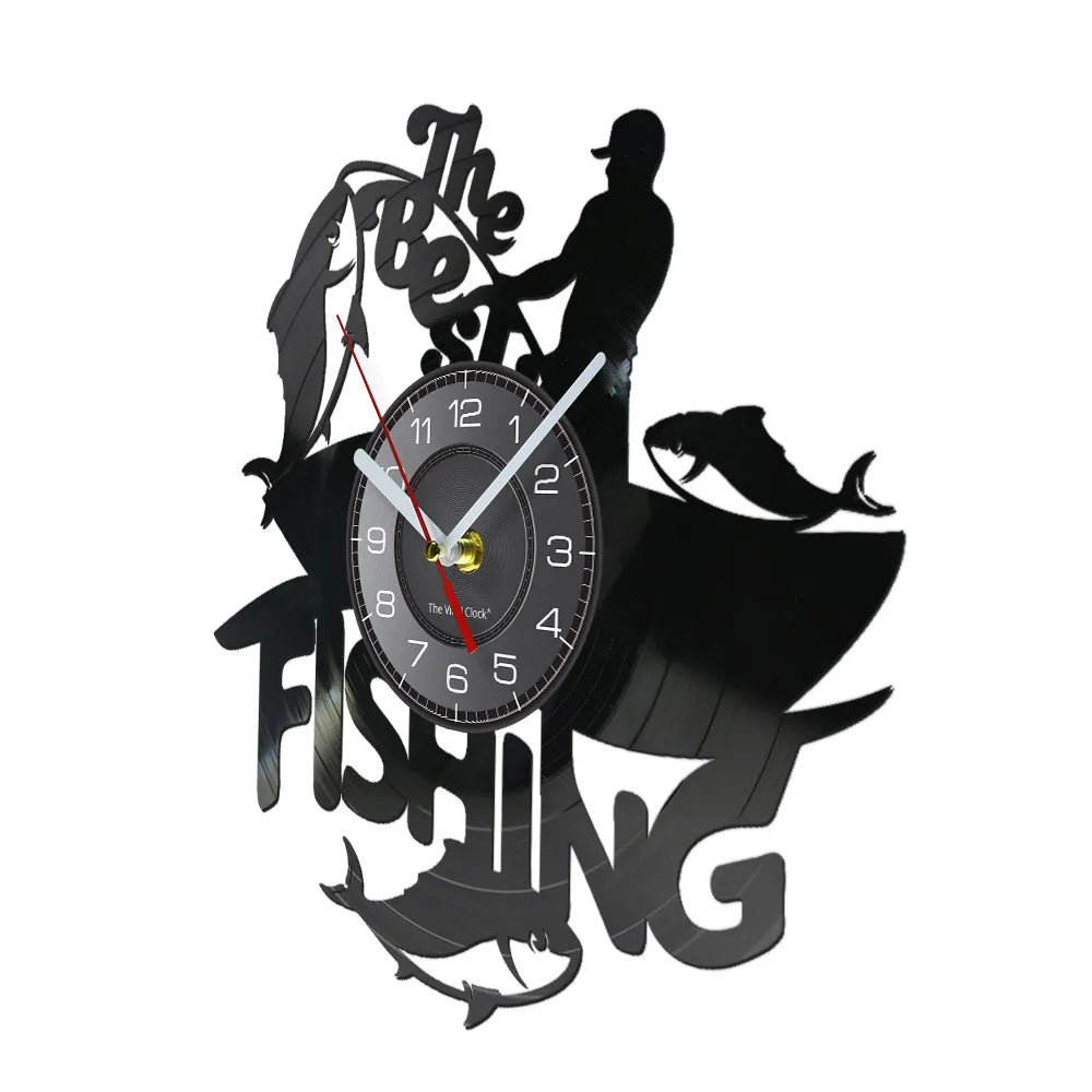 Fishing Is The Best Silhouette Wall Clock Outdoor Activity Big Fish Small Boat Wall Watch With LED Illumination Vinyl Disk Craft