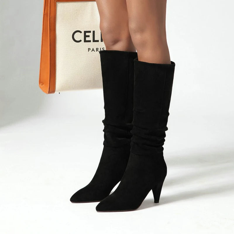 Flock Brand Design Women Knee High Boots Spike High Heel Women Pointed Toe Boots