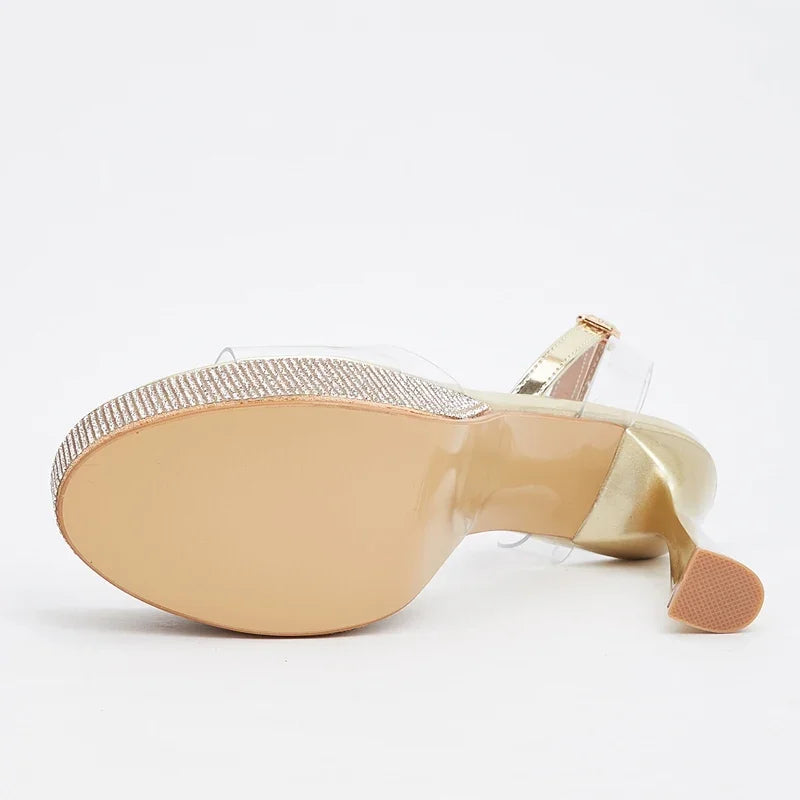 Gold Silver Peep Toe Transparent Women Sandals