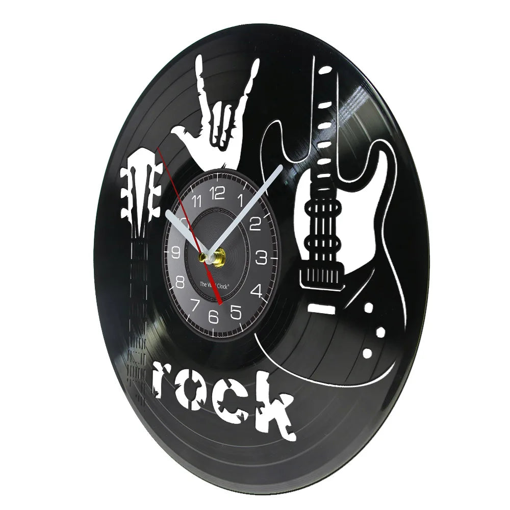 Guitar Laser Cut Longplay Wall Clock Music Insturument RNR Gesture Vinyl LP Wall Watch Hanging Rock N Roll Gifts for Guitarists