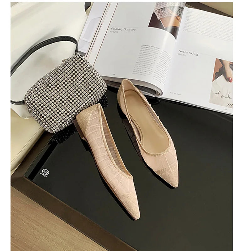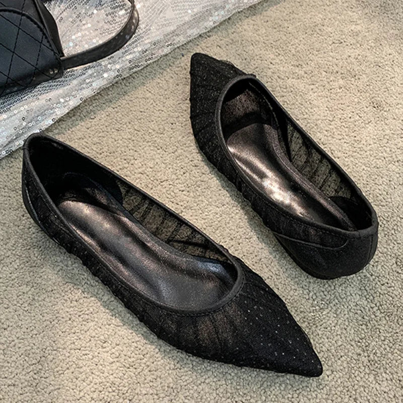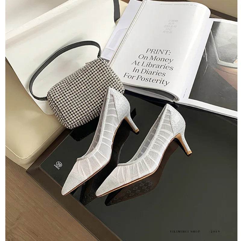 Lace Pointed Mesh Fine Heel Shoes for Women