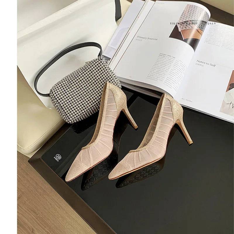 Lace Pointed Mesh Fine Heel Shoes for Women Autumn New Sexy High Heel Shoes Shallow Wedding Shoes