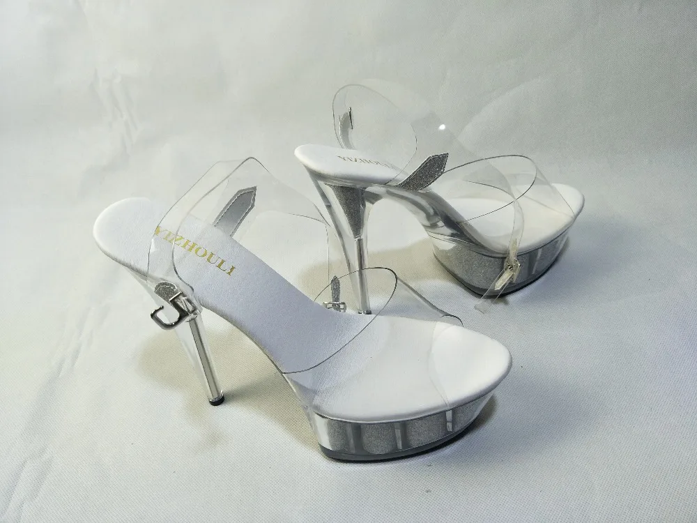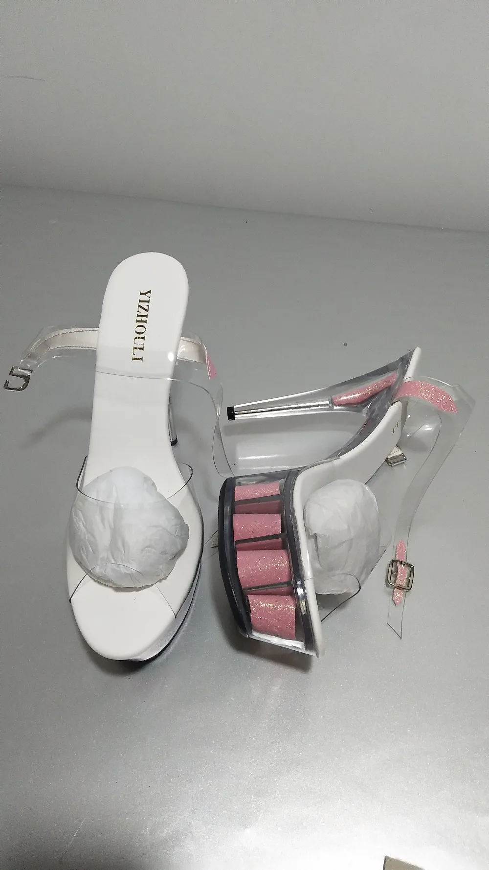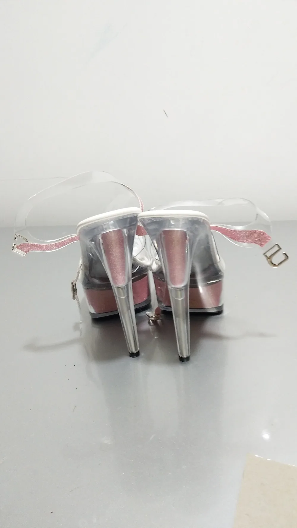 Ladies club sexy dance shoes, 17cm high heels, summer crystal clear wedding party sandals