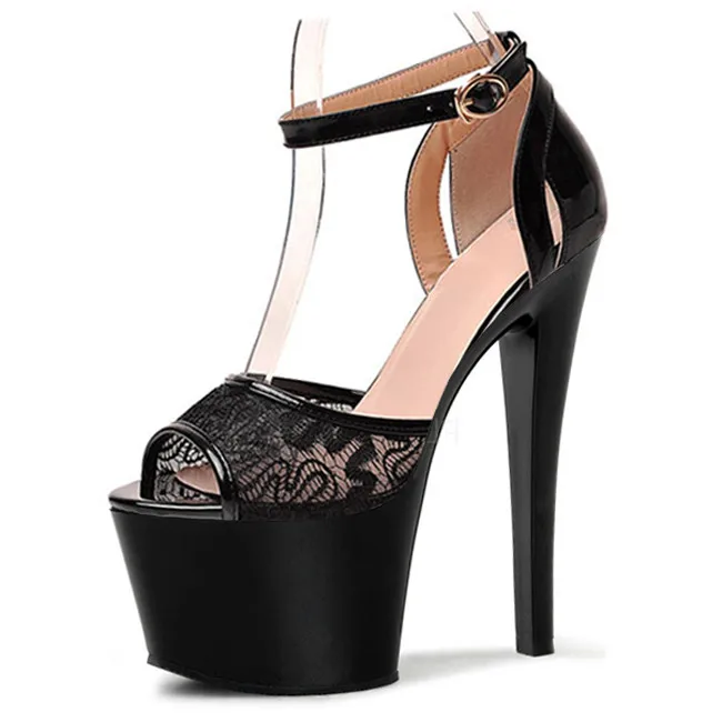 Mesh fabric material 17 cm high heels, Roman style fashion model stage pole dance performance show sandals