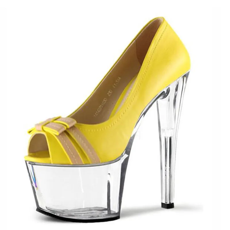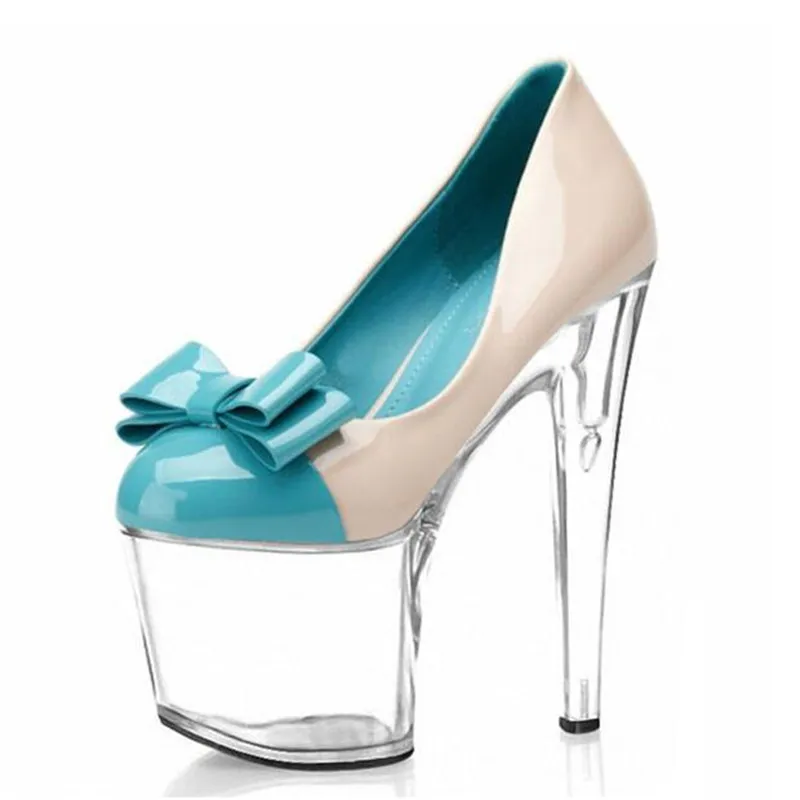 New Arrival Women's dress shoes shallow mouth Sexy 17cm Thin Heels Transparent crystal Platform low-top Catwalk Shows Girl Pumps