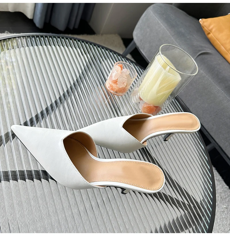 New Blue Woman Pumps Slipper Fashion Cozy Leather Sandal Shoes Ladies Pointed Toe Slip On Mules Thin Low Heels Slides