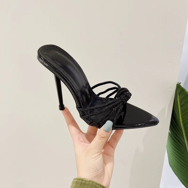 New Sexy Pointed Toe Thin High Heels Pumps Rhinestone Slipper Summer Fashion Slip On Slides Women Mules Party Shoes Sandal