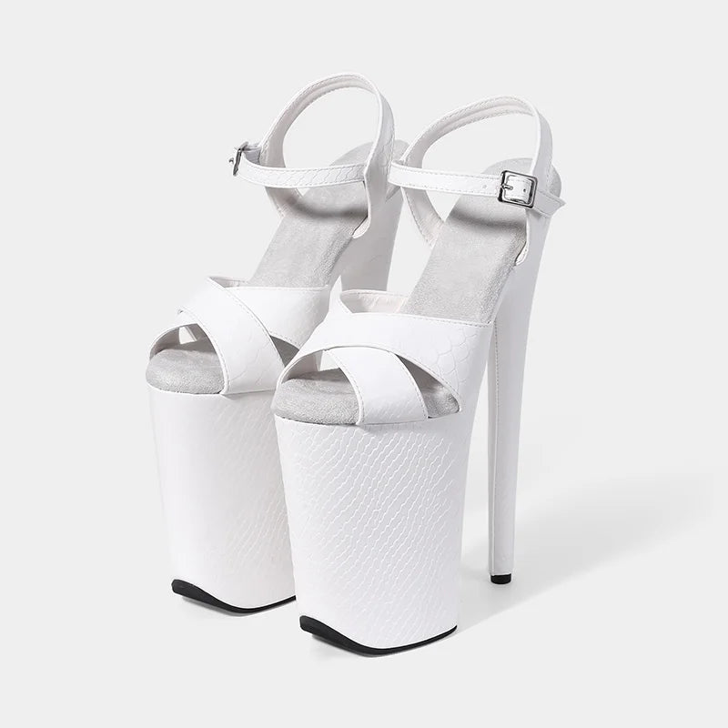 New Snakeskin Upper Fashion Sexy Exotic 23CM High Heel Party Women Modern Sandals Platform Pole Dance Shoes