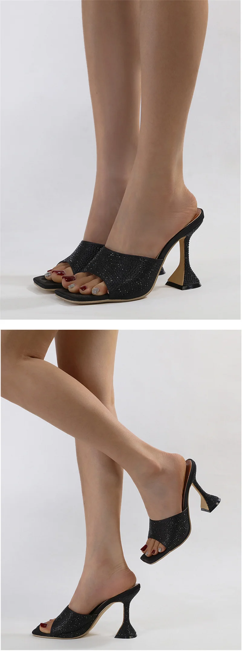 New Summer Crystal Rhinestone Strange Heels Slippers Sexy Street Woman Square Toes Dress Party Shoes Sandals