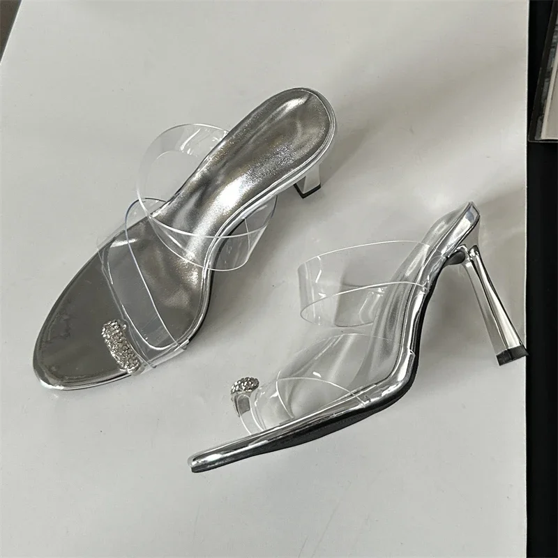 New Summer Fashion CRYSTAL PVC Transparent Women Slippers Clip Toe Thin Heels Female Shoes Zapatos Mujer