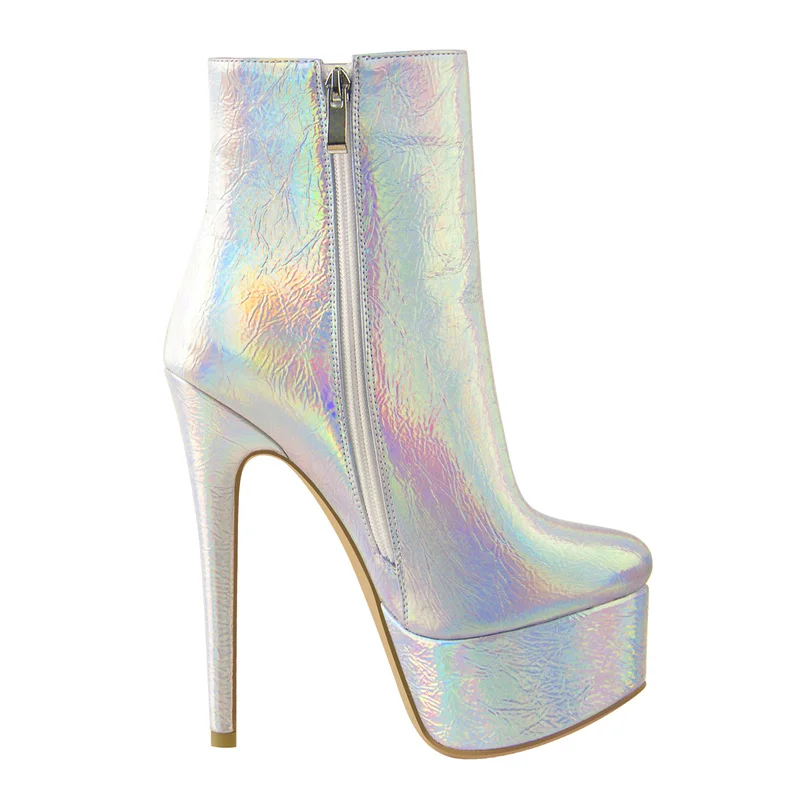 Platform Ankle Boots Women Round Toe Thin High Side Zipper Slim Fashion Party Winter Handmade Booties