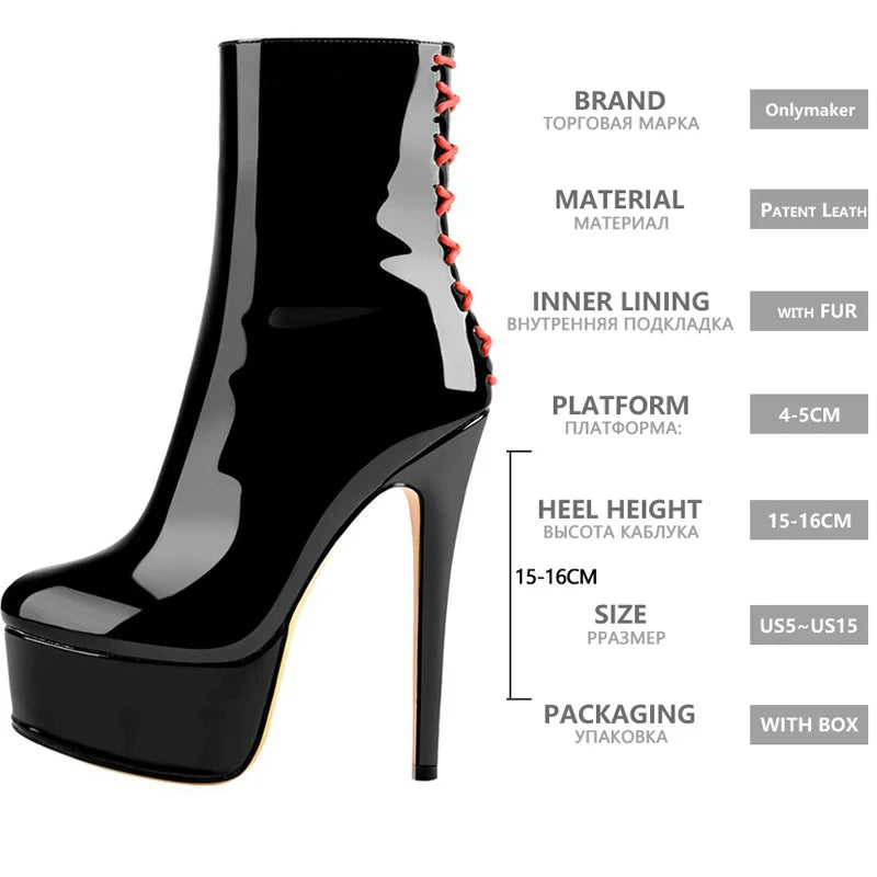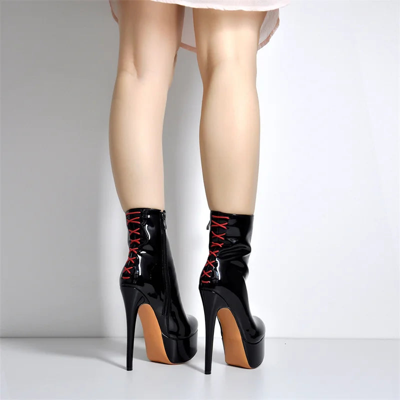 Platform Ankle Boots Women Round Toe Thin Party Winter Handmade Booties