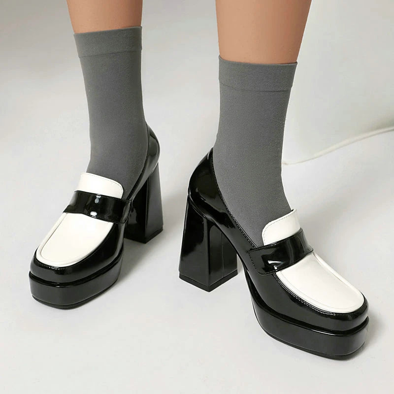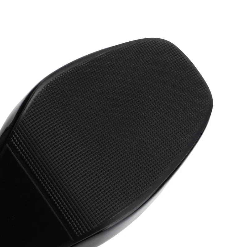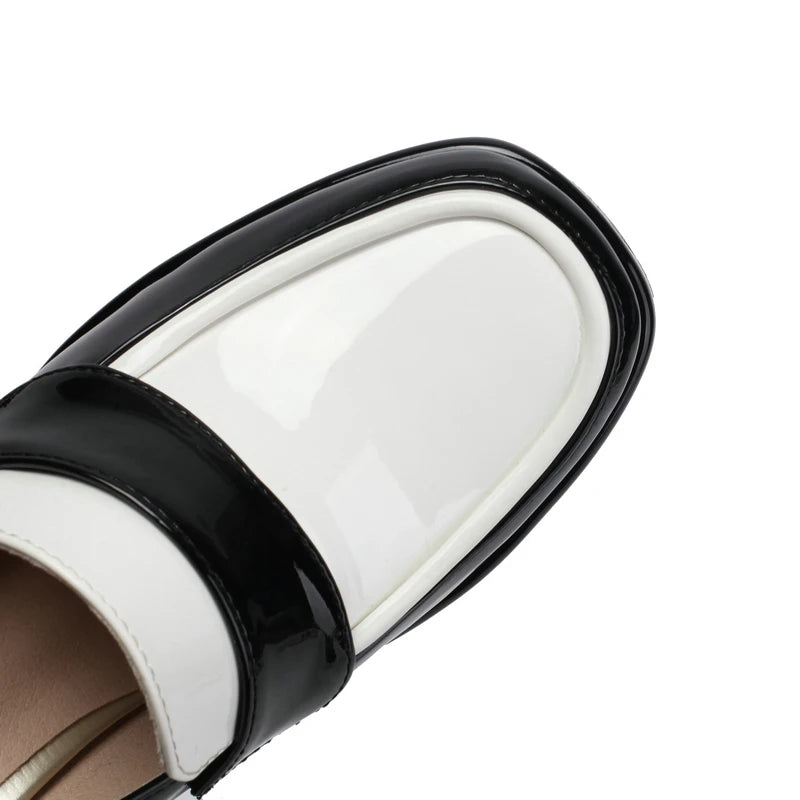 Platform Thick High Heel Ladies Pumps PU Leather Square Toe Slip on Women Lazy Shoes Big Size
