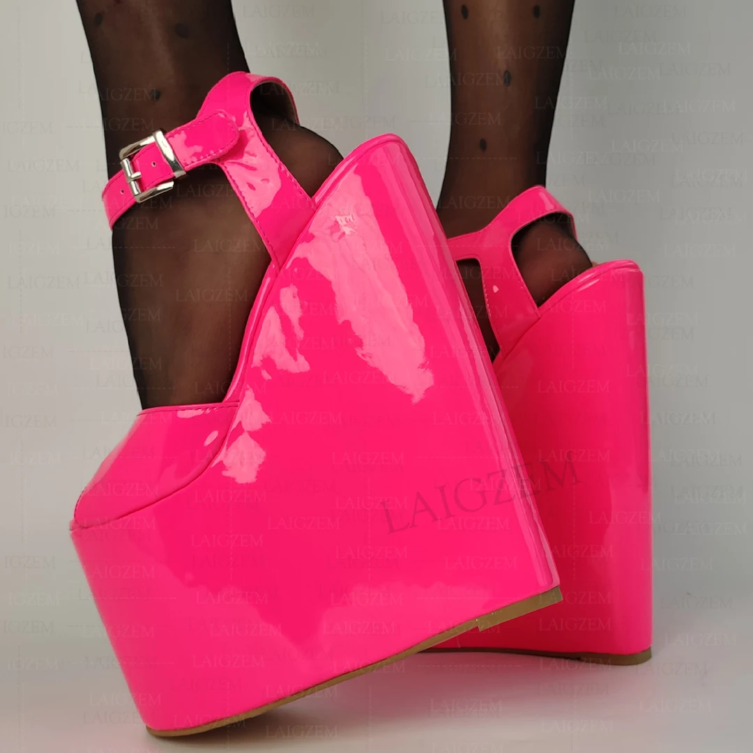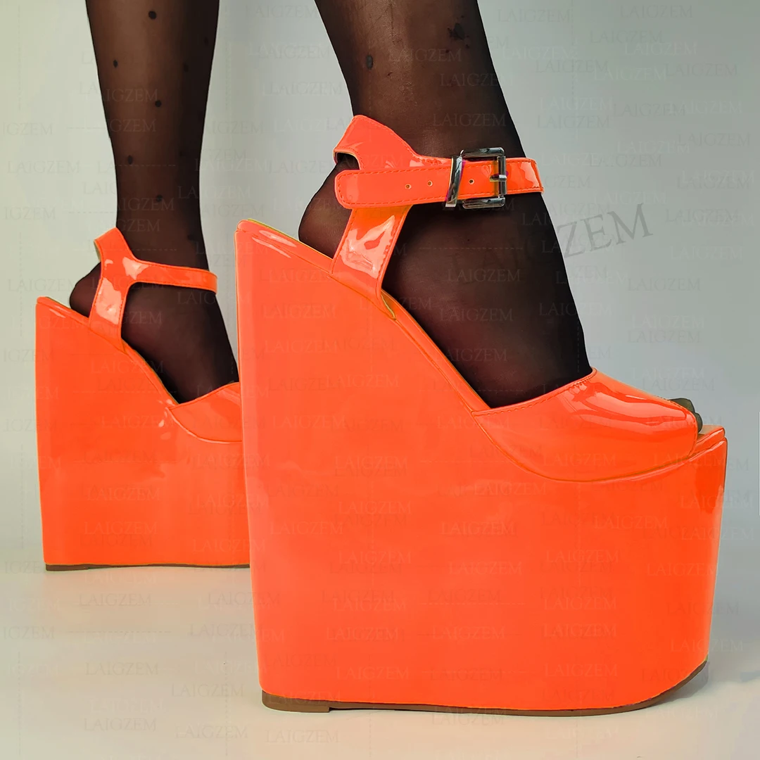 Women Sandals Platform Wedges 22CM Neon Colors Ankle Strap Pumps Height Increase Shoes Woman Big Size 36 38 41 43 46 48