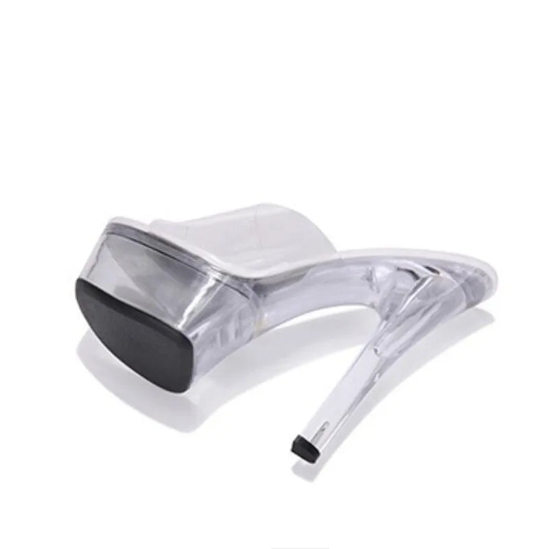 Plus:34-43 44 COS female sandals sexy woman shoes crystal transparent platform pumps 13/15cm thin heels Women's Banquet shoes