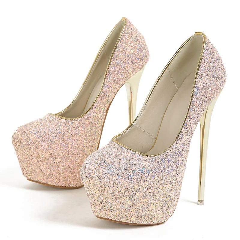 Plus 35-45 Sexy Sequined Cloth Round Toe Wedding Women Pumps Fetish Shoes Concise Thin Heels 16CM Stripper Shoes