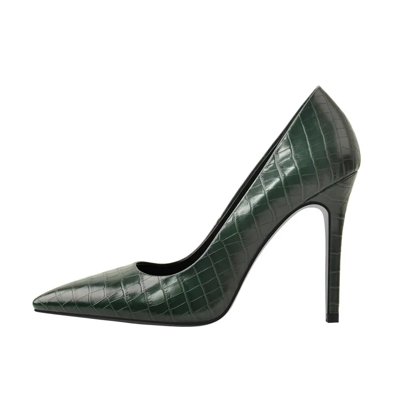 Pointed Toe Dark Sea green Slip On Thin Heel s Stone Patent Leather Stiletto Pumps