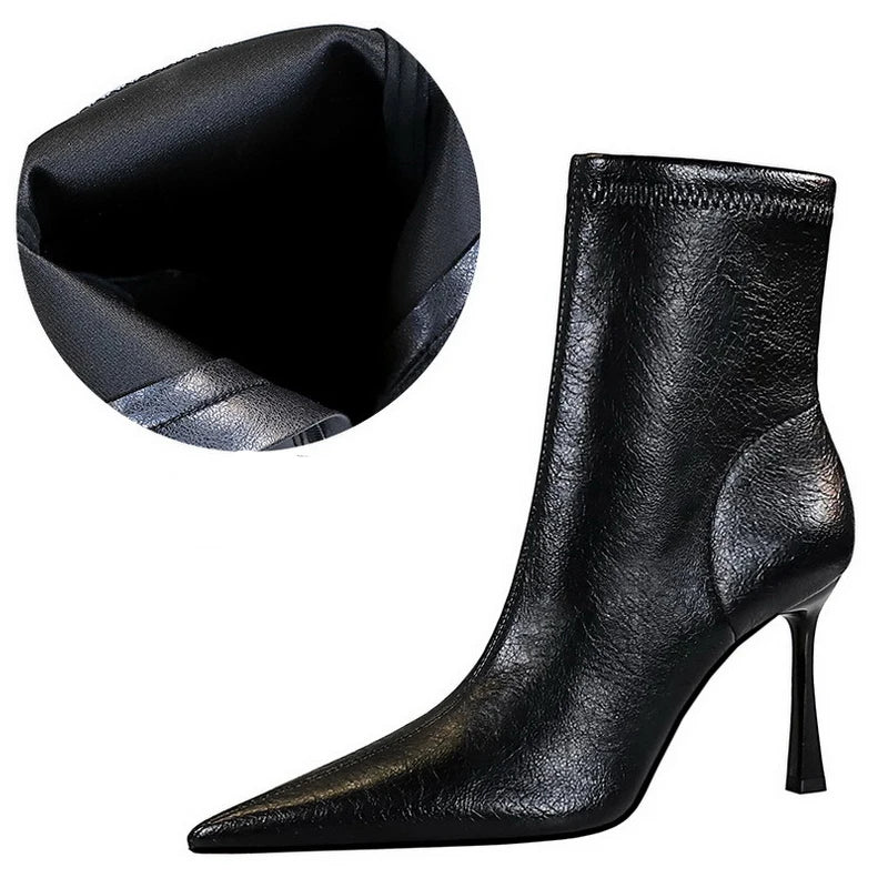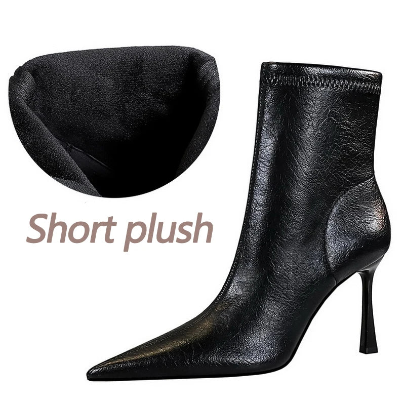 Shoes Rice White Women Leather Boots Side Zipper High Heel Boots Warm Plush Winter Shoes Fashion Women's Ankle Boots