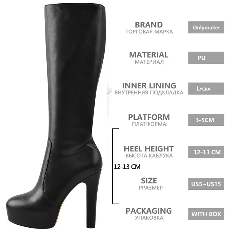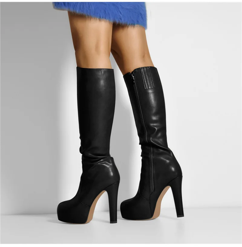 Women Knee High Boots Round Toe Black Matte Leopard White Side Zipper Winter Fashion Party Dress Big Size Boots