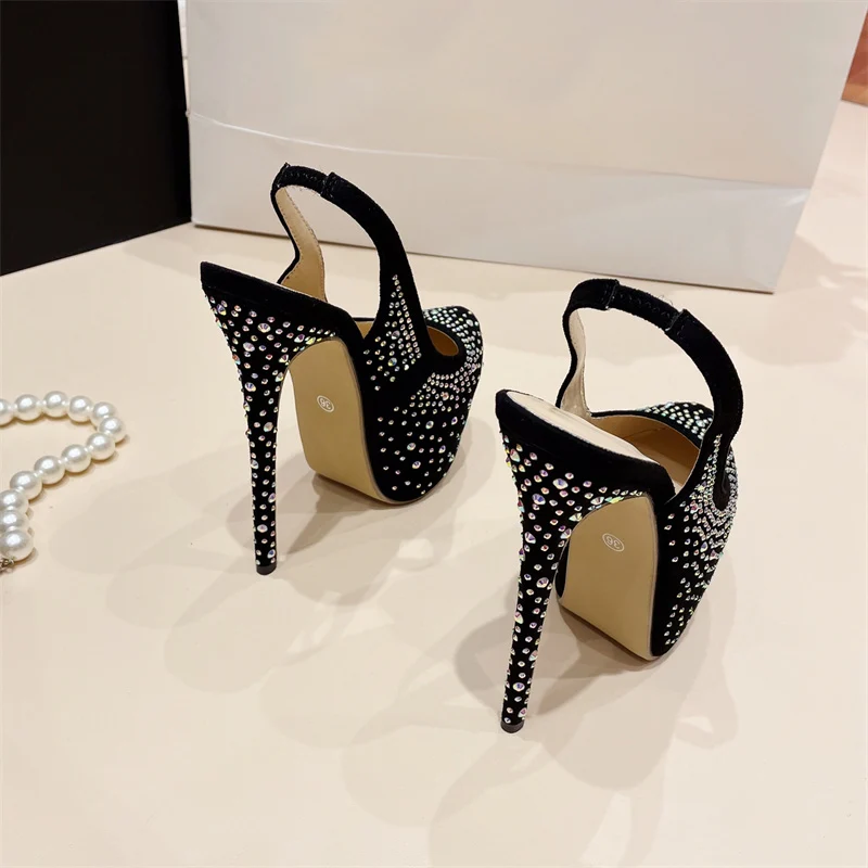 Runway Fashion Rhinestones Women Platform Pumps Sexy Slingback Slip-On Back Strap Extreme High Heels Party Dress Shoes