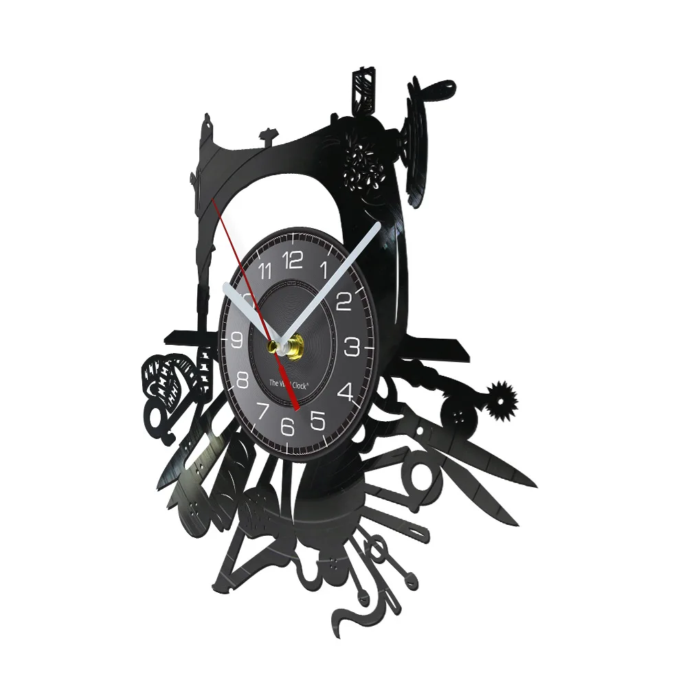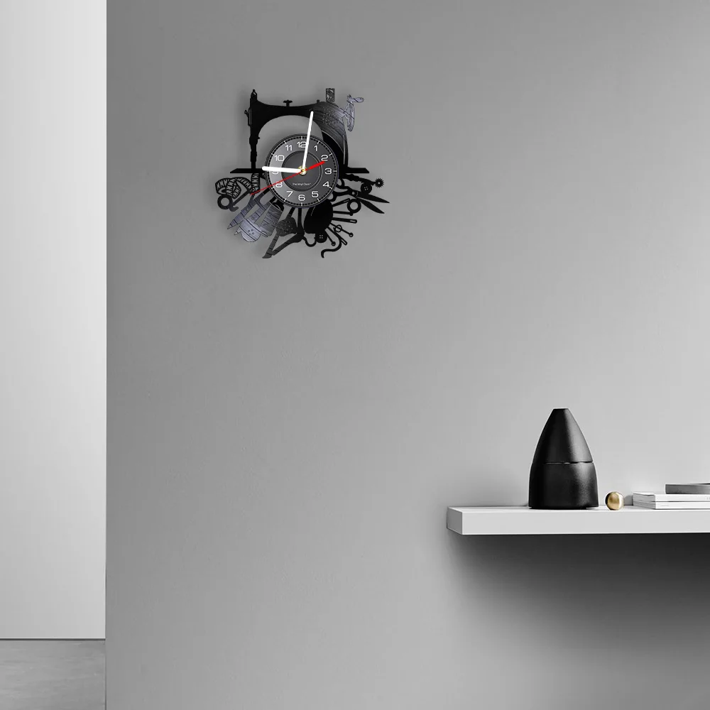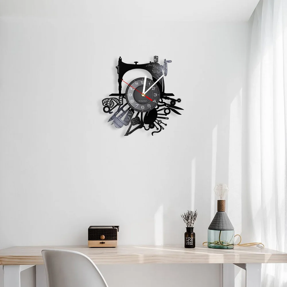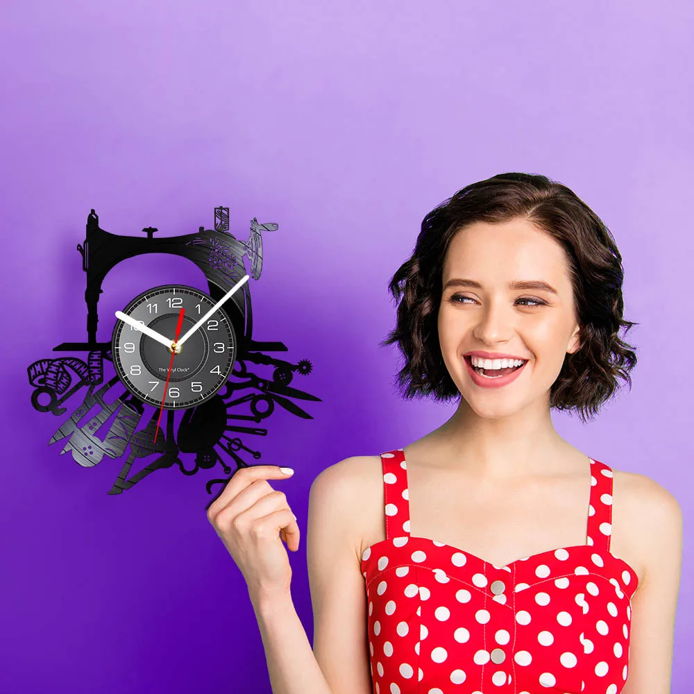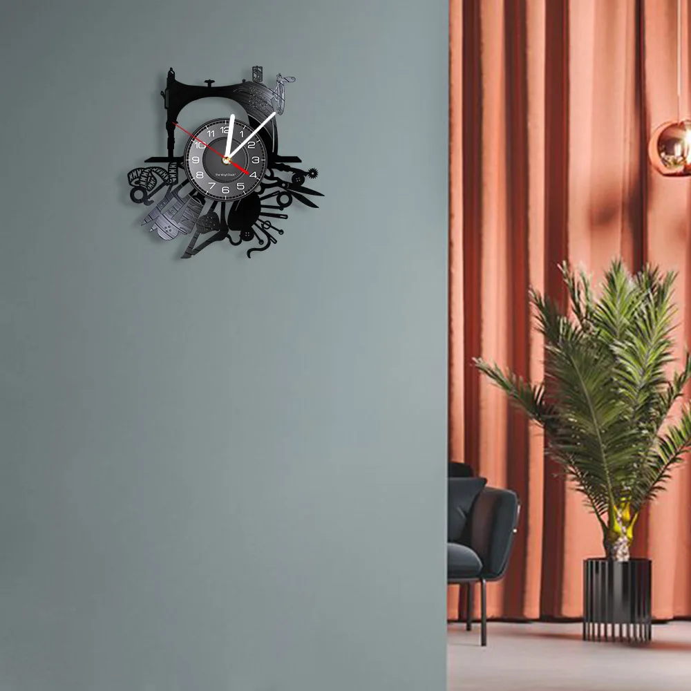 Sewing Machine Wall Art Hobby Wall Decor Craft Room Decor Vinyl Record Wall Clock Beautiful Wall Sign for Clothes Designer