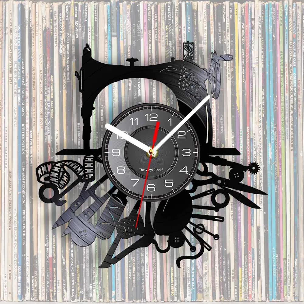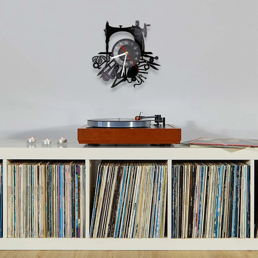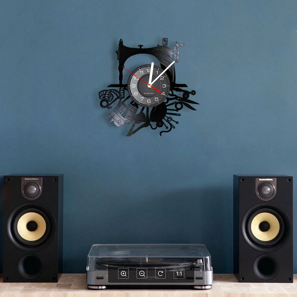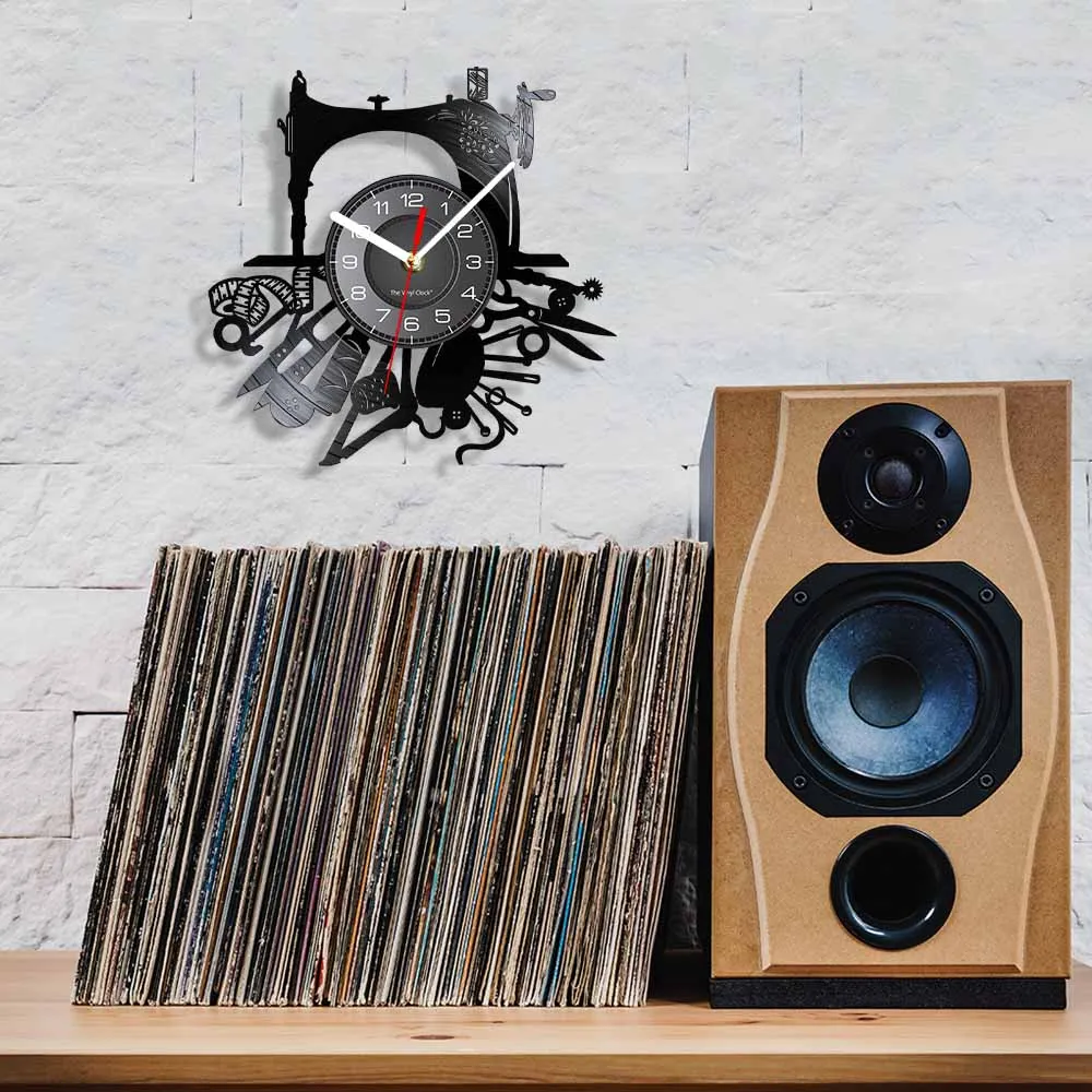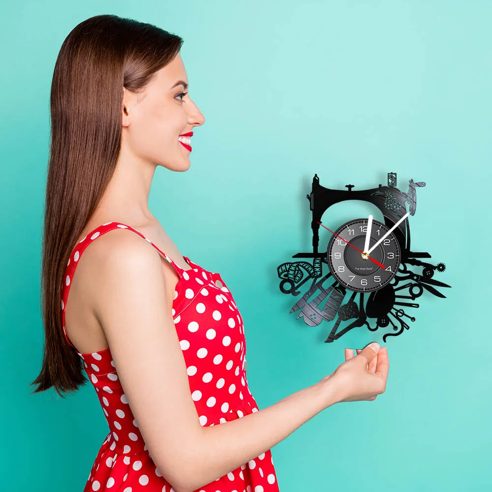Sewing Machine Wall Art Hobby Wall Decor Craft Room Decor Vinyl Record Wall Clock Beautiful Wall Sign for Clothes Designer