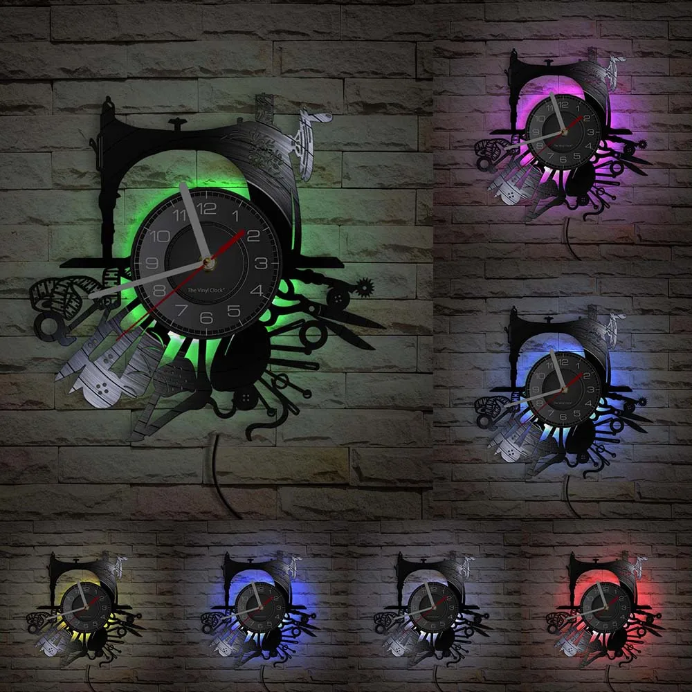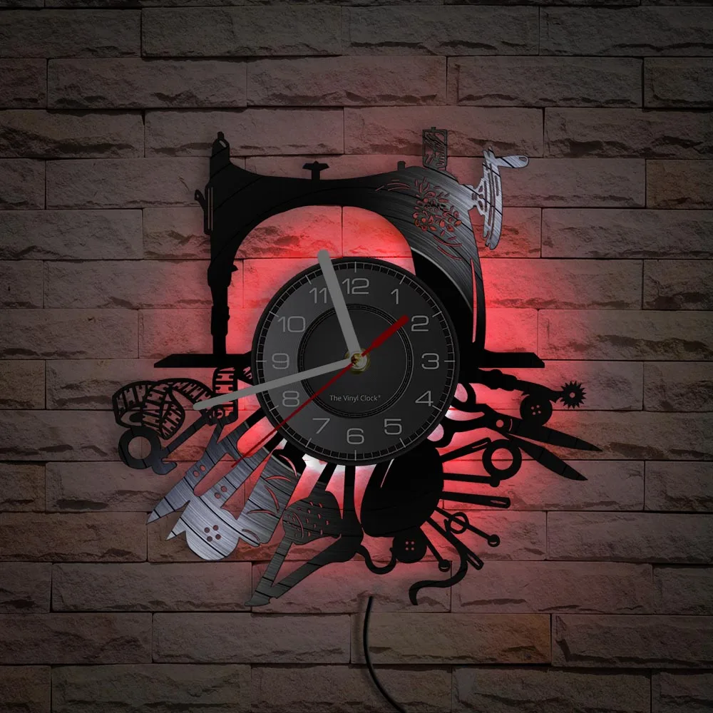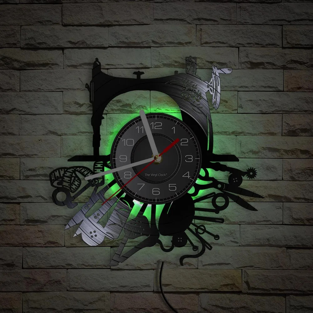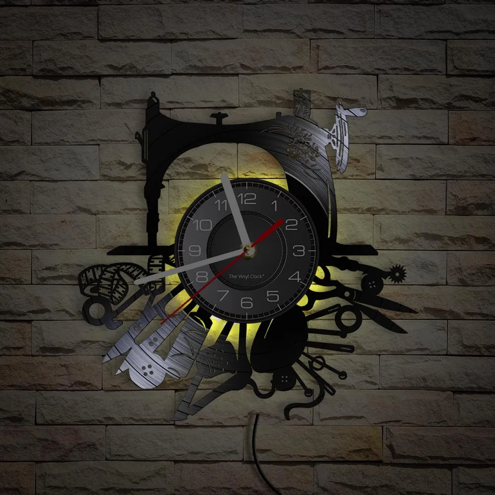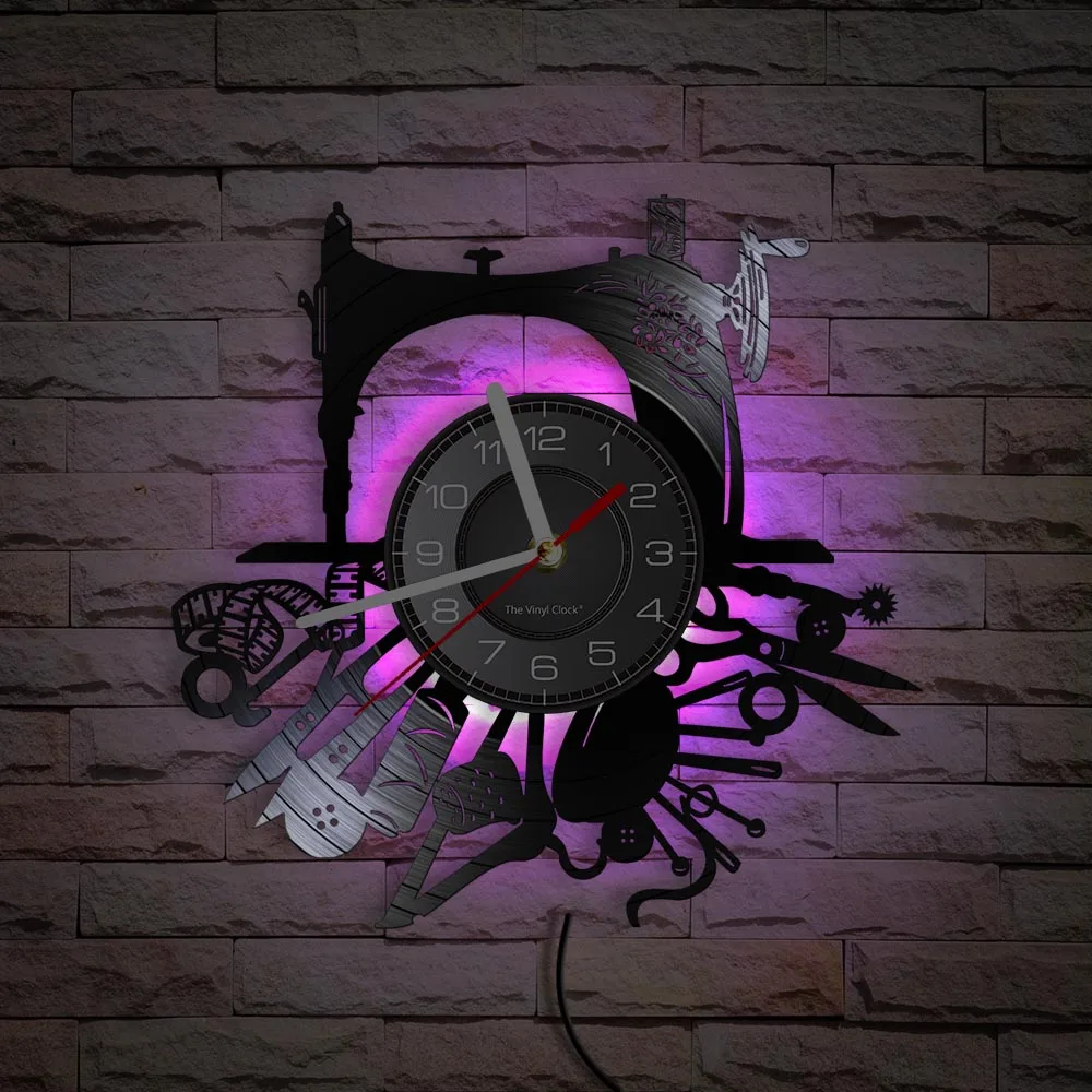 Sewing Machine Wall Art Hobby Wall Decor Craft Room Decor Vinyl Record Wall Clock Beautiful Wall Sign for Clothes Designer