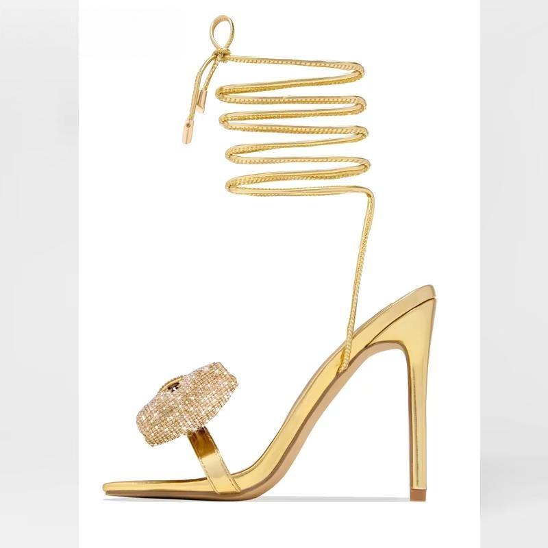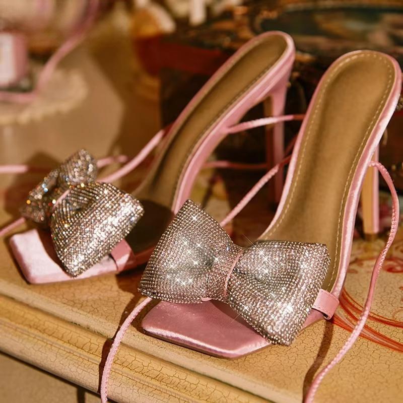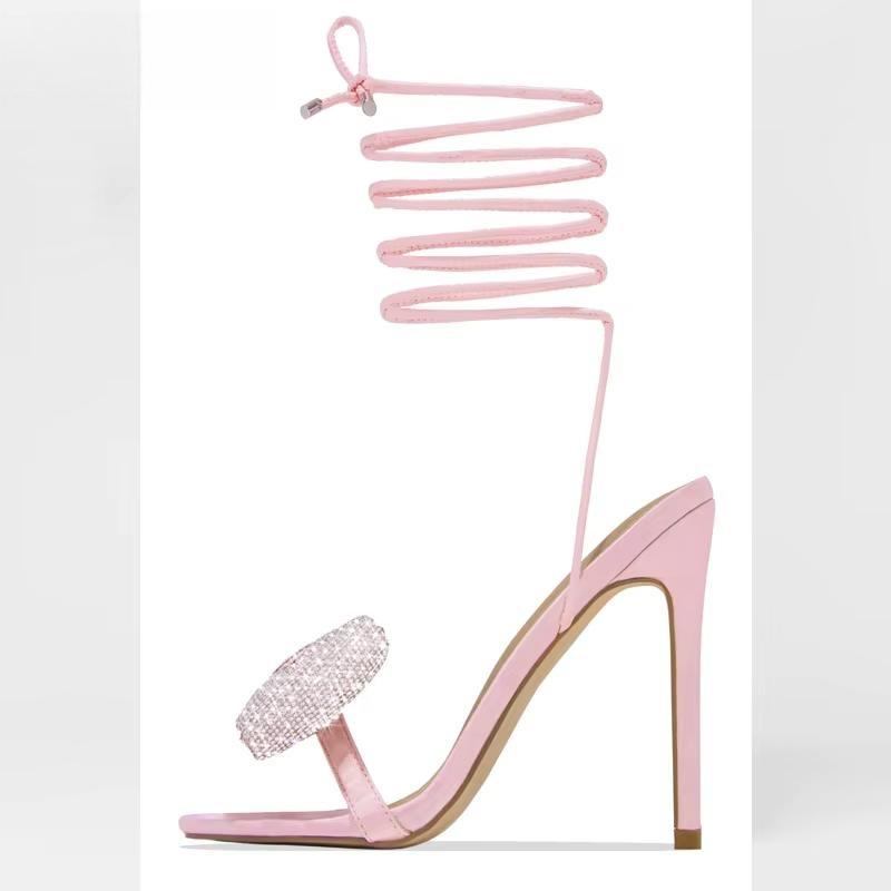 Sexy Butterfly Knot Rhinestone Open Toe Lace Up Sandals Women Party Wedding Banquet Summer Fashion Stripper Heels Shoes