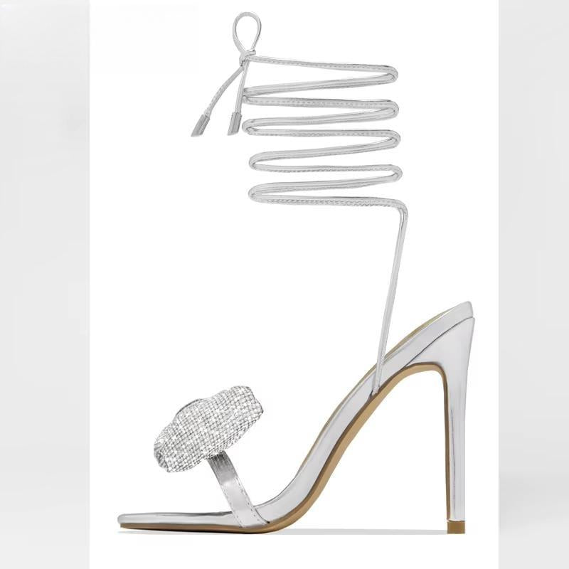 Sexy Butterfly Knot Rhinestone Open Toe Lace Up Sandals Women