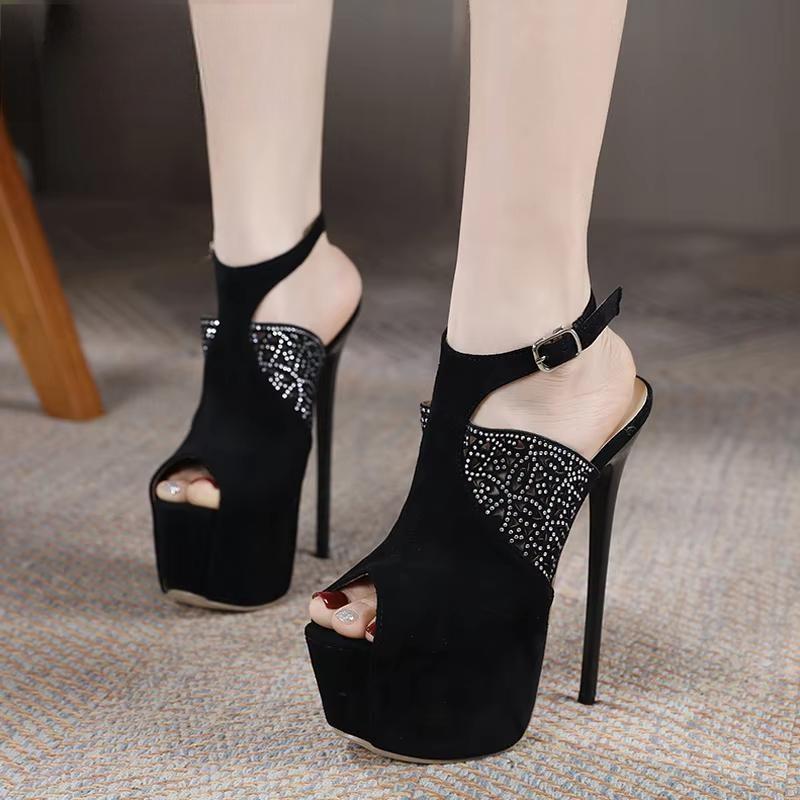 Sexy High Heels Platform Sandals For Women Open Toe Hollow out Buckle Crystal Stiletto Wedding Stripper Shoes