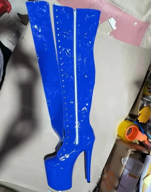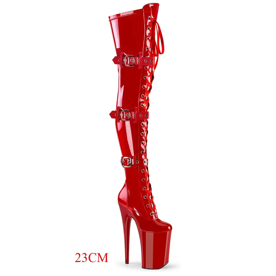 Sexy model 23cm heels available in custom colors, club pole dancing boots with 9-inch, thigh-high boots