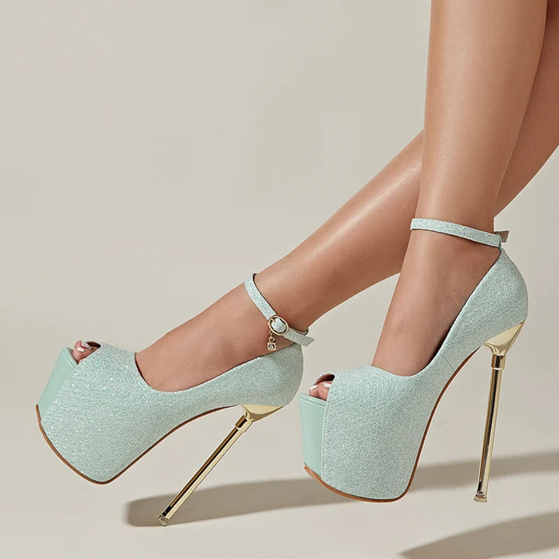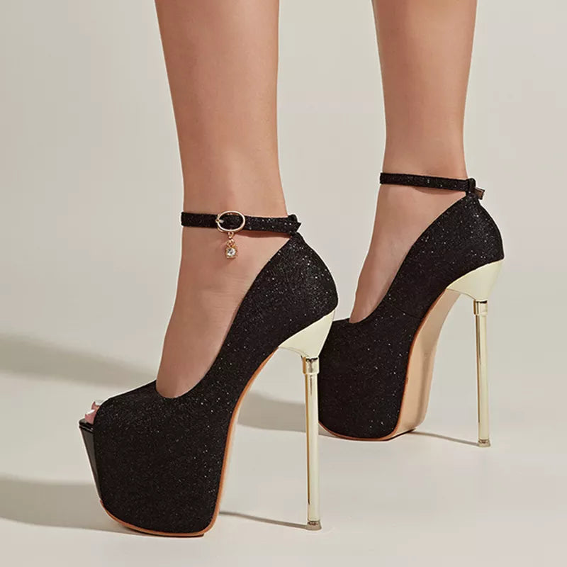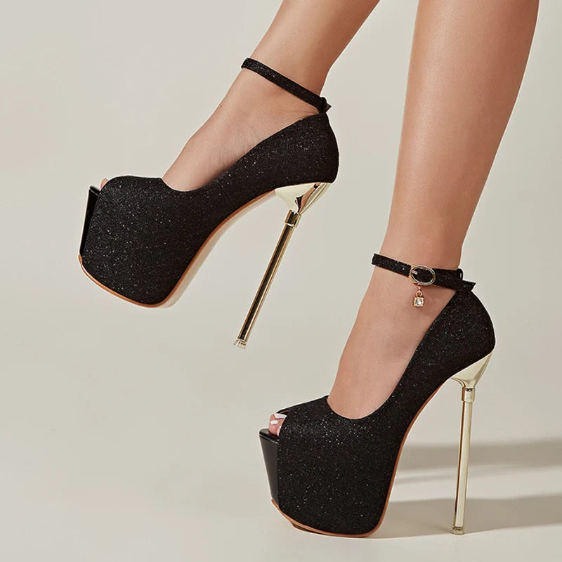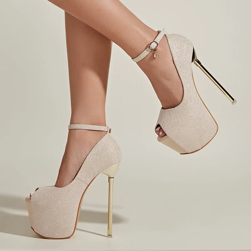 Sexy Nightclub Pole Dance Shoes 17CM Super Stiletto High Heels Ladies Fashion Peep Toe Buckle Strap Platform Pumps Women