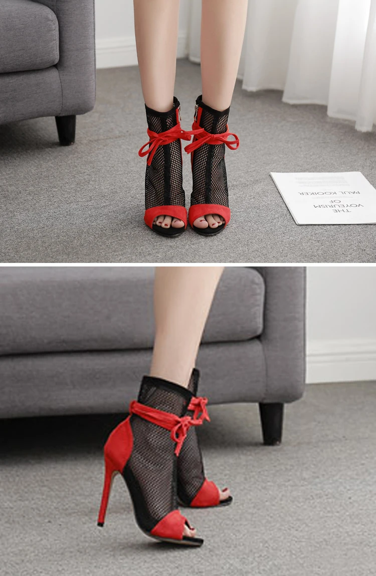 Sexy Peep Toe Stiletto High Heels Women's Sandals Party Zipper ANKLE Boots Club Strippers Shoes Sandalias De Mujer