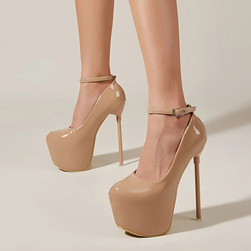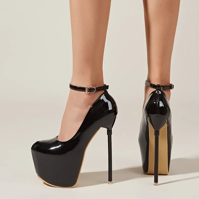 Sexy Round Toe 17CM Extreme High Heels Women Party Wedding Banquet Stiletto Shoes Fashion Buckle Strap Platform Pumps