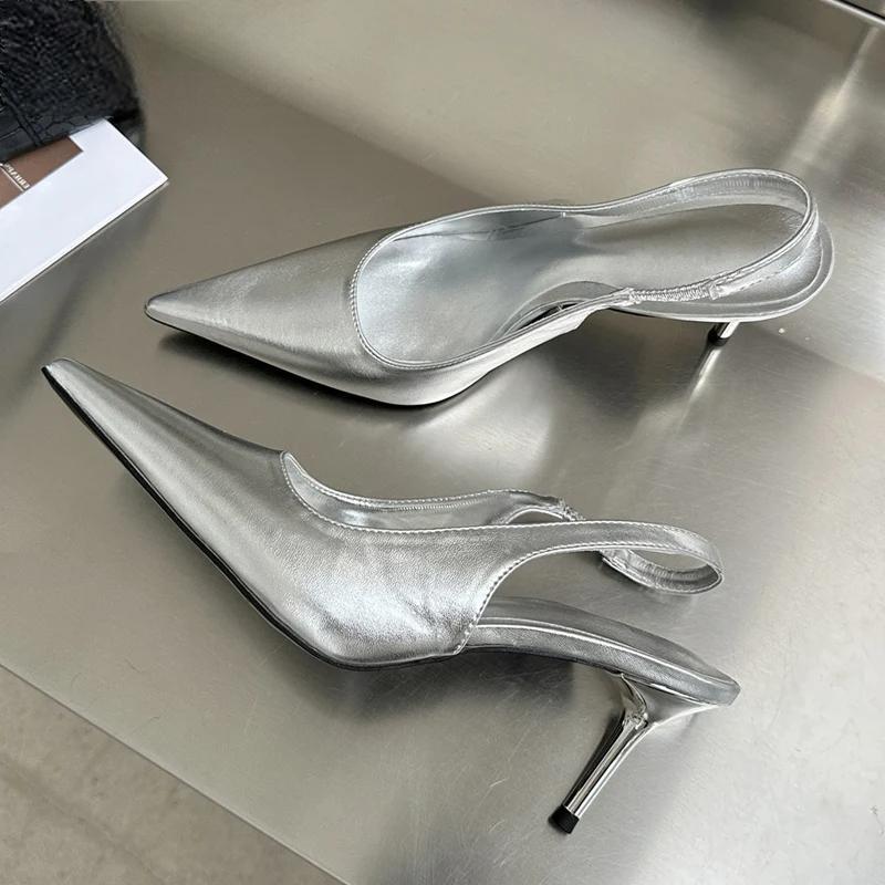 Sexy Soft Leather Women Pointed Toe Pumps Fashion Ladies Slingback Thin High Heel