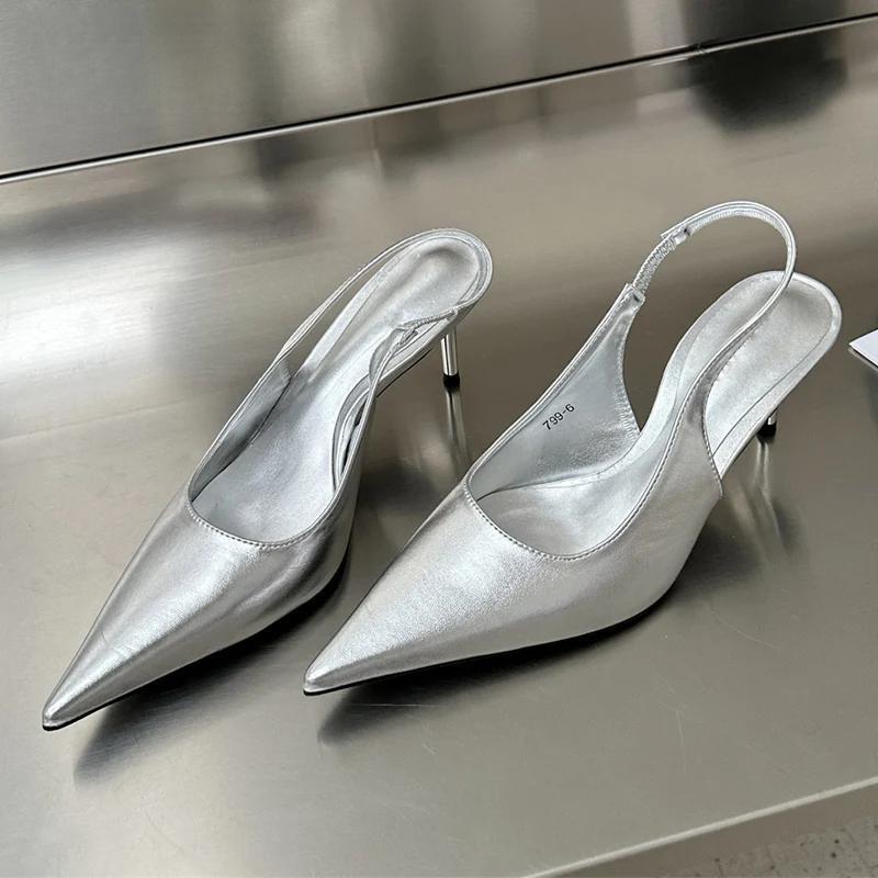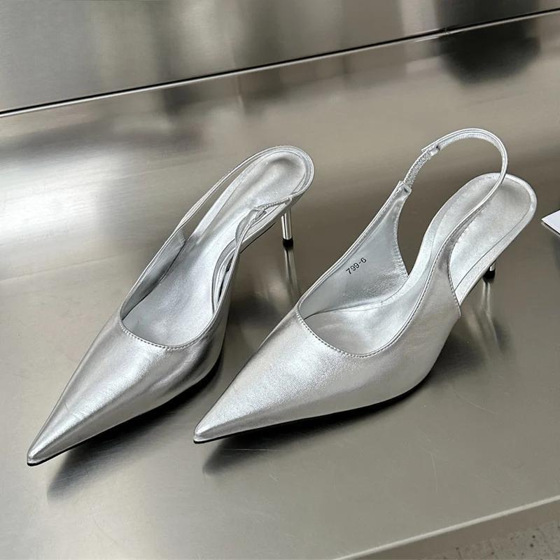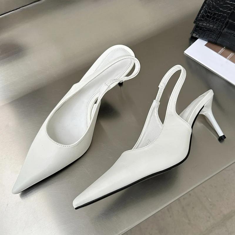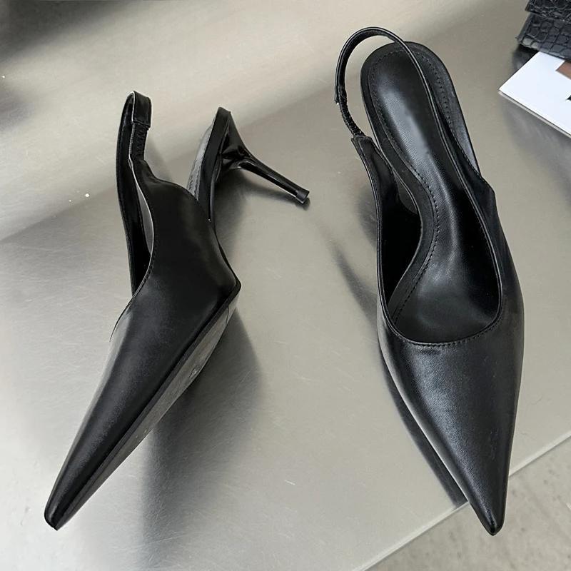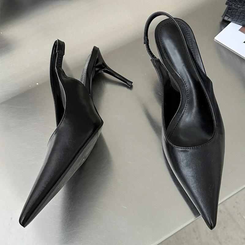 New Sexy Soft Leather Women Pointed Toe Pumps Fashion Ladies Slingback Thin High Heel Sandal Spring Party Shoes