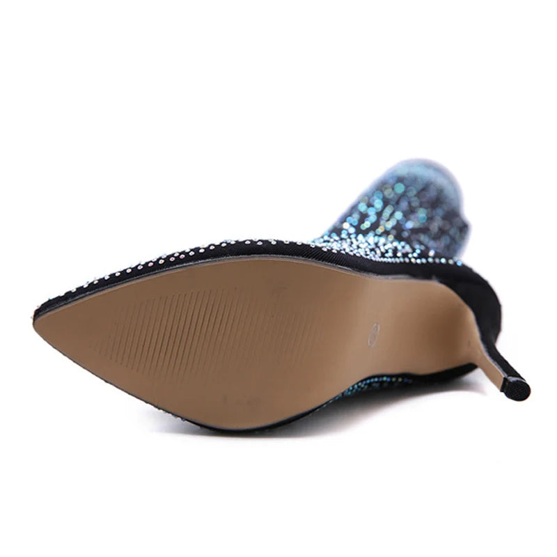 Sexy Thigh Women's High Boots Fashion Crystal Stretch Fabric Sock Boot Pointed Toe Over-the-Knee Heel Stripper Shoes Size 35-43